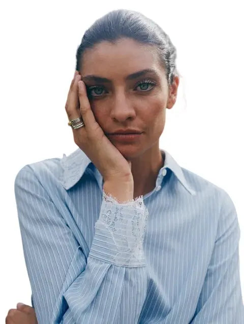 Elinda Stripe Lace Shirt 835 Brunnera Blue - XS is in backorder en zal worden verzonden vanaf het moment het terug beschikbaar is